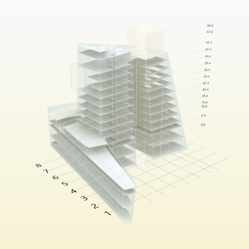 3d conceptual architectural project development from simple masses; with all the fundamental project data you need.